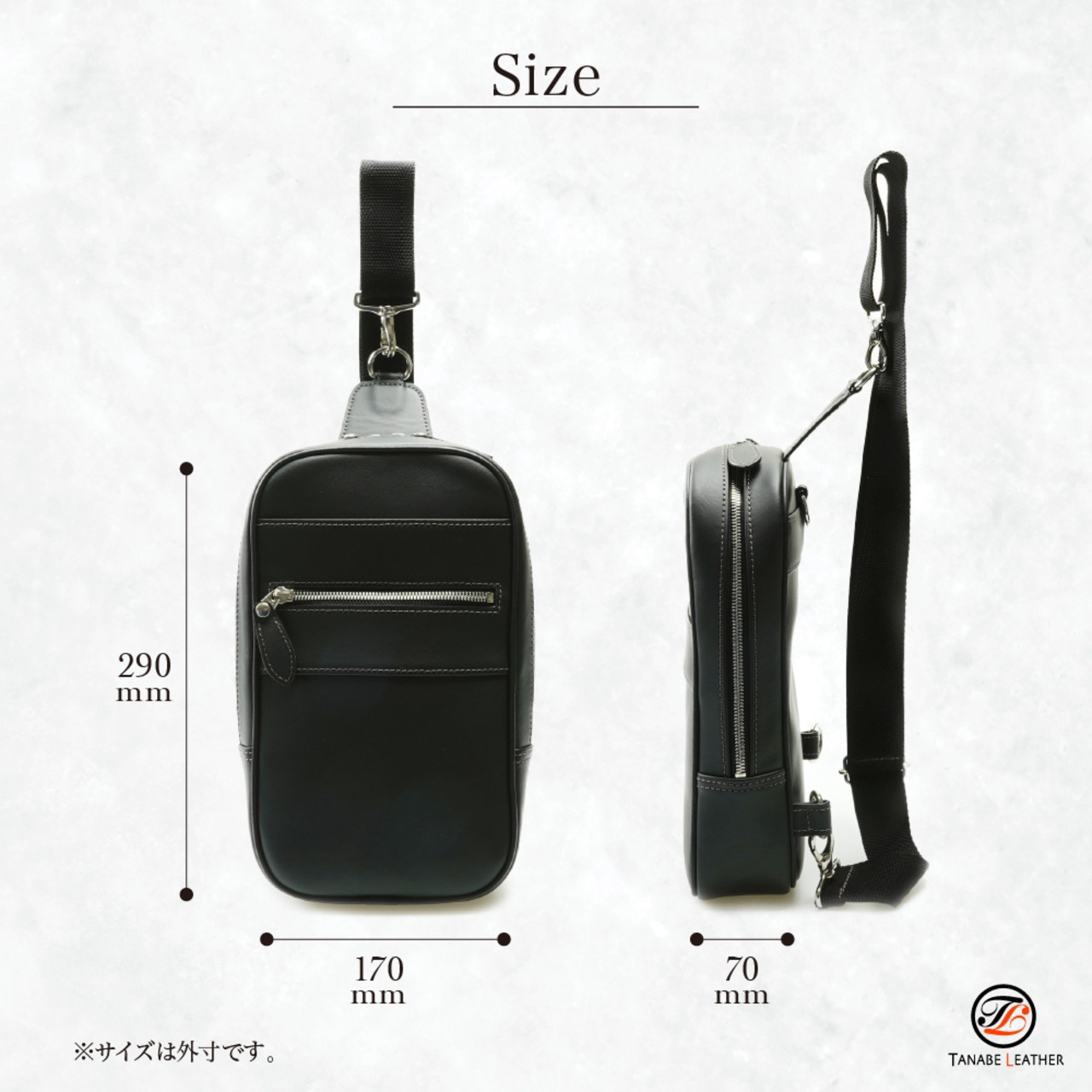 贅沢な感触と美しい光沢で、本革以上にタフな自動車ハンドル用レザーがボディーバックになりました!ハンドルを握った時のようなしっかりとした肌触りなのに、表面は丈夫な特殊コーティング仕上げでキズが付きにくい仕様。アルコール消毒も可能なハンドルレザーは、長く使って頂きたい革製品と相性が抜群な優れものです。